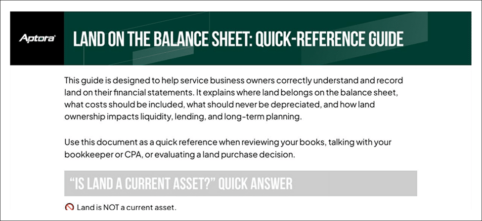 📥 Free Download: Confused about where land belongs on your balance sheet? Download our Land on the Balance Sheet: Quick-Reference Guide so you’ll know exactly how land should be recorded, valued, and handled on your books.