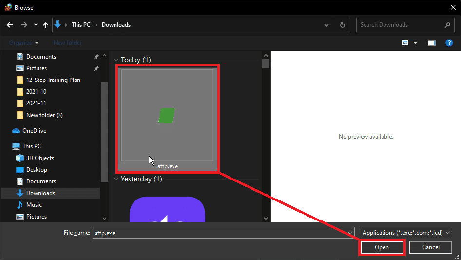 - Navigate to your where you’ve downloaded the aftp.exe program.